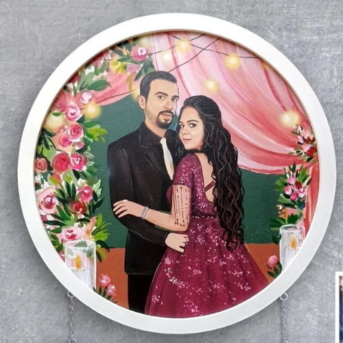 Hand-Painted Wooden Couple Portrait & Name Plate